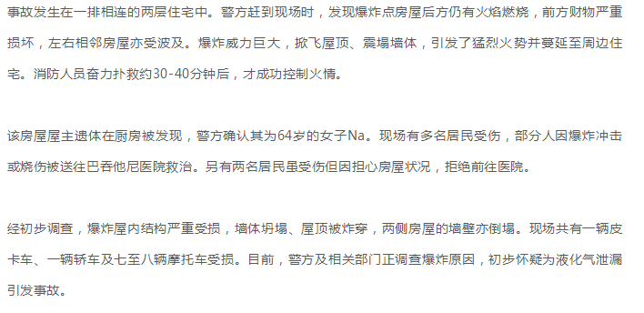【爆炸新闻】泰国一住宅液化气爆炸,致一死多伤!